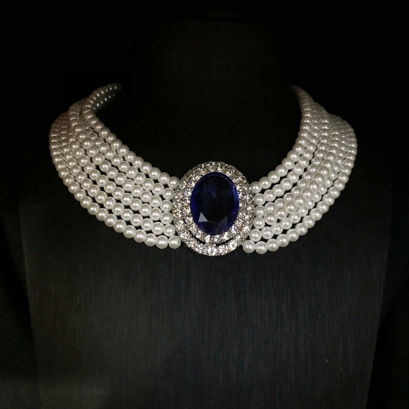 This necklace is handcrafted from Alloy and 18k gold plated layer with Zircon. It is anti-tarnishing and anti-allergenic. Material: Alloy, Zircon, Pearl, 18k gold plated Color: Blue Chain Size: 33+5 cm